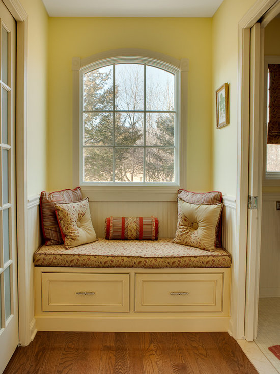 AK: Where is your favorite spot in the house? - JS: The vanity area in the master bedroom was dark when we bought the home. It had two sinks and a mirror but no natural light coming in. We didn't need the extra sink, so we converted the space into a small seating area by adding a window, and drawers were built into the seat for extra storage.