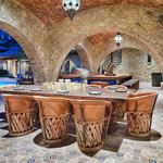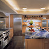 A ginormous wood island creates one heck of a work station in this amazing kitchen.