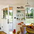 Open shelves are equal parts practical and pretty. An open china hutch filled with useful and pretty items is so much more relaxed than the typical glass-front version. White wall cladding gives the entire space a fresh cottage look, and baskets of bountiful produce on display are a welcoming touch.See the rest of this home