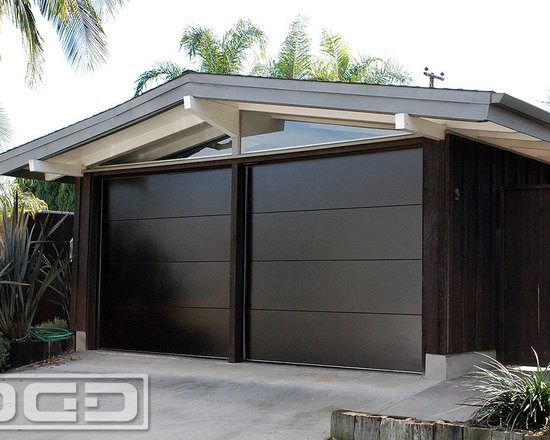 Dynamic Garage Door designed, crafted and installed a fine-lined garage door that complemented this Cliff May Modern Ranch style home in Long Beach. Our garage door did not only add character to the home but eased usability for the family as well as insulation properties that help making use of the garage as a multipurpose room a reality. Whether the kids have a Garage Rock Band practice, the new custom garage door insulates sound from reaching the neighbor's ears and keeping the players warm inside. Nothing says "Mid Century" like fine-lined design that resonates that ideal May Cliff Modern Ranch Style.
