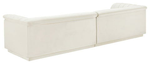 Give your room a much-needed rehab when you bring home this Cascade velvet modular sofa. The elegantly attention-grabbing design features a modern profile with curved arms deep horizontal channel tufting, so it wows from all angles. Upholstered in rich cream velvet, this seat quickly becomes everyone''s favorite spot for curling up with a good book or smart device. Thick foam padding ensures a cozy, body-hugging experience. while you watch TV or just relax.Overall Product Dimensions: 118" W x 35" D x 28" HSoft Cream Velvet FabricDeep Channel TuftingCurved ArmsContemporary DesignSeat Dimensions: Seat Width: 95"Seat Height: 17"Seat Depth: 24"Arm Height: 28"Back Height: 28"