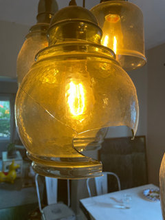 Broken glass on Paxton 8 light hanging pendant