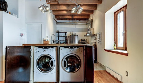 A little DIY spirit allowed this homeowner to add a washer, dryer, kitchen countertop and dining table all in one