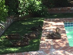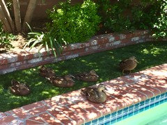 I'm so sorry about your pool!!! I know it is a lot of work. Now you understand why we have duck proofed our pool each year after caring after our 8 ducklings and mom a few years ago! So much money on food and liquid chlorine! It is still an adventure and looking back, I think it was worth the one time to witness and learn about these beautiful ducks in the comfort of your own backyard!They will fly away! I felt the same as the two of you but wildlife expert kept reassuring me that no matter how much they might feel safe and love it here, it is still in their natural instinct to fly away and start their journey!