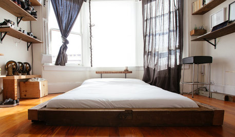 With scrap wood and a hands-on attitude, a San Francisco renter on a tight budget furnishes his bedroom and more