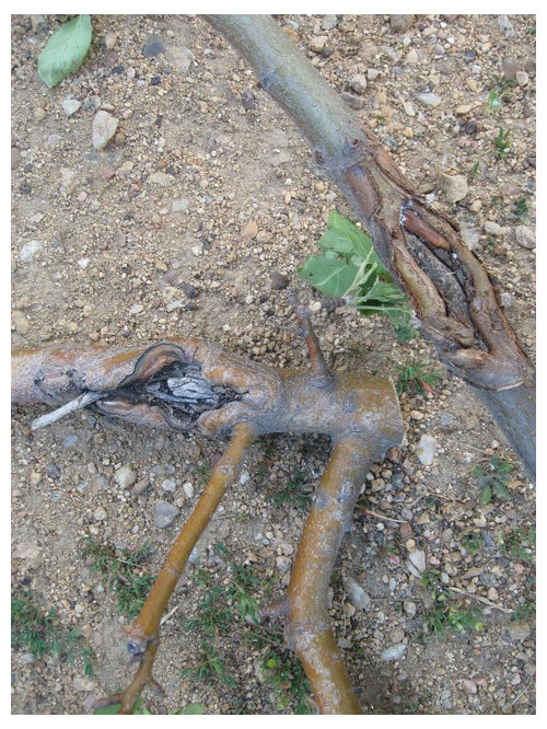 Perhaps I should have pruned more ruthlessly after the fire and removed any and all damaged branches, but doing so would probably have lost the tree. As it is, this tree is growing well, it has set some fruit this year, and if I had not noticed the earlier oozing, I probably would not have thought anything wrong with this tree.