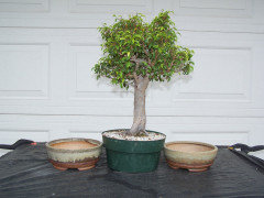 Ficus b. is suitable for most bonsai styles, although I cannot imagine it as a literati. Since they air layer so easily, a very nice bonsai can be started by buying a standard type tree at a nursery or discount store, then air layering the top. IÂve seen plants with larger than 2 inch trunks for around $20. Air layered trees will exhibit more basal flare and more even roots than those grown from cuttings. Pot selection can be important. Shallow pots will also encourage basal flare. Always select pots that will drain well.