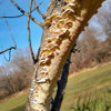 What would leave a half eaten apple on the tree?