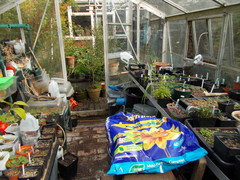 I had contemplated a greenhouse in the past but don't know how useful it would be here. I wouldn't be able to overwinter tropicals and the like without some form of supplemental heat since the winter temps usually get well below zero. Then in the summer we get temps over 100. That's not even considering the high winds and hail storms. I would think in a climate with less fluctuations it could be wonderful though. Campanula to me your greenhouse just looks like anyone's would who is actually using it.