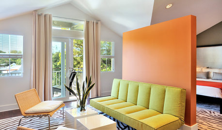On the fence about decorating with orange? Ease into it with mango, a gentler tone that makes rooms no less striking