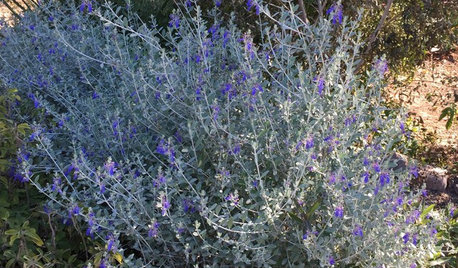 The silvery-gray foliage and blue flowers of this Mediterranean native stand out in low-water landscapes