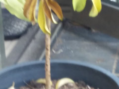 The plant has been in this position for a week and started shedding leaves (about 30) from the middle of the tree.