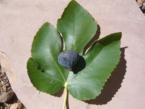 Nice bloom to that fig and a very distinctive leaf with those serrated edges.....tight eye and no pulp cavity to boot. Very nice looking fig. Does it taste as good as it looks?