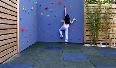 With a climbing wall, a fire pit and low-maintenance lushness, this remodeled California patio has something for everyone