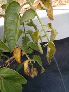Curled leaves and wilt on tomato plants.