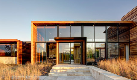 Rich materials and a hint of shingle style warm a modern design for living and entertaining on Long Island