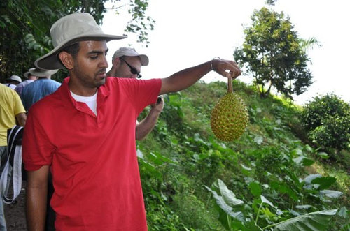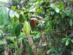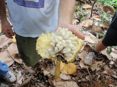 Thanks for the account and pictures--it sounds like a great time! I'm impressed by the herrania; it looks like a jellyfish! The durian in the pictures looks terribly small and unripe--were you actually able to eat it? The nutmeg also looks great; I hope someday I'll get to try a marang.