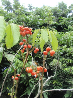 Thursday had us up early again and on our way up the mountain to visit Sherry Ballester of Viveroanones Nursery and Farm. Much to our disappointment, we did not get to visit Sherry last year. Sherry has a vast diversity of fruits and ornamentals. She loves her land and her trees very much and is very proud of it all...as she should be. There was lots to see and taste here as well...more mangosteen and some rambutan. I climbed a langsat tree and tossed down fruit to everyone. That was fun for everyone! Too bad the fruit was about a week or so away from being at it's best. Still good. Afterwards, we relaxed on her porch with more fruit and an absolute awesome punch she had made from frozen acerola, fresh lime and fresh passionfruit. My God was it good and refreshing! Sherry was a sweetheart and cared for us like we were her own. She even drove us to our next destination which was a good distance away. After introducing us to Juan Miranda, whose farm we now stood on, she left us to take care of a family crisis.