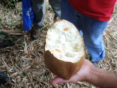 We got to try one of Ian's durian, variety unknown, that came off a tree that just fell the night before during a storm. It was quite a big tree too and very sad to see. However...I did learn later that they were going to attempt to raise the tree in hopes of saving it.