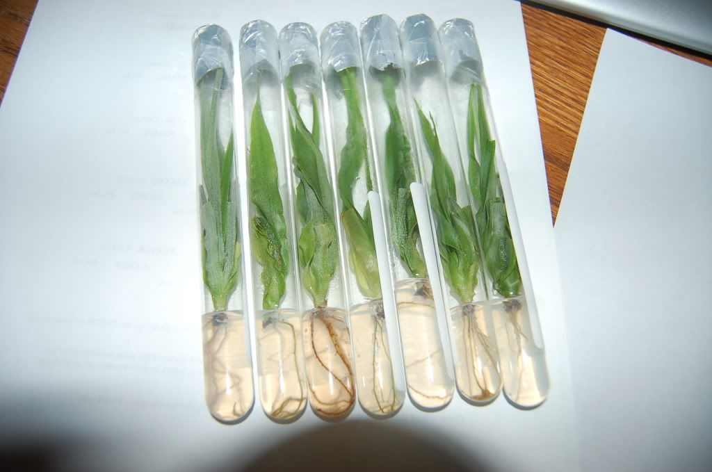 No problem. Those plants look very nice. Did you plant them out already? I made the mistake and waited two weeks before I planted out my last set and there was some rot. They all have survived thus far but I think they would have established faster not for the rot. Also, be careful when removing them from the test tubes. The first time I pulled on one and the leave popped off. Now I stick something down the tube to break up the agar before I pull on the plant.