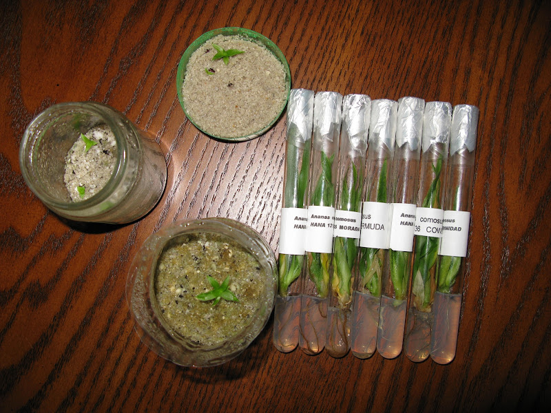 These are some new pineapple seedlings I grew plus some tissue cultures I received. I now have about 15 different named cultivars of pineapple.