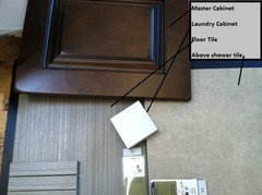 ontariomom-the laundry cabs are from HomeCrest and the color is sand dollar. I liked it the minute I saw it. The darker cabinet is for the master bath. The laundry has 2 uppers above the washer and dryer and then a small sink base and that's it. It won't be a lot of color in there but enough.