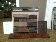 Fireplace stone - we found this split stone in our budget that we also like. It's a lot less heavier looking than our original choice. The black is the board the sample is affixed to. We are still undecided: