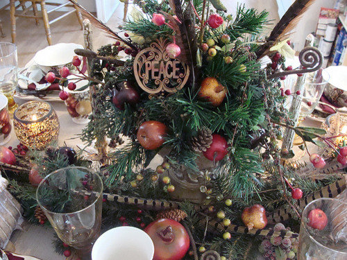 When I shopped for items to make the centerpiece, I found the peace ornaments and thought, "How perfect!"