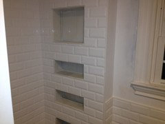 Bathroom niche for beveled subway tile