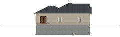 Second image is the same roof design shown from the corner by the two front bedrooms. (BTW - the tiny gable above the hip roof is where the hip roof section over you master bedroom is truncated as it reached the rib of the hip roof section over the second bedroom. The tip of has to be truncated because the width of the master bedroom makes this section of roof taller than section it attaches to.)