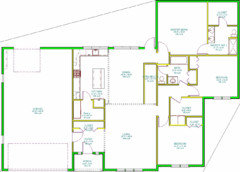 Original Author13 years agolast modified: 10 years agoOk, scrapped the above plan and worked with some of the ideas from Summerfield. I've shortened the kitchen and dining room up a little, moved the washer/dryer to the back entry area, and used the 'master suite' concept with the master bedroom. Overall, this seems pretty good to me, only potential negative I see right now is a few longish halls.