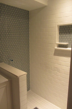 Very small bathroom remodel - glass tiles?