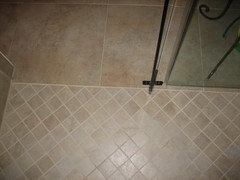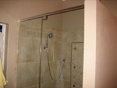 curbless and frosted glass tile