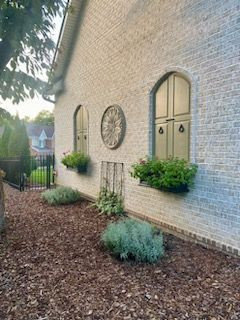 We have plans to add an awning over this storybook window (to match the side bedroom and garage entrance awnings,) but cannot get the metal roofer to come back.