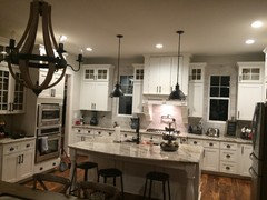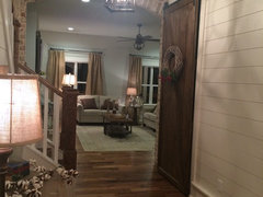 Oh, you're home is lovely. It looks like you've thought of everything you need. I don't know what we were thinking when building this large home except we have large family gatherings. We have 4 married kids & #10 grandbaby due in Oct. It's a circus and for now, we really could use the space. We plan to use the garage apt as a guest house or we might list it on a short-term rental site like Airbnb. We did finish the upstairs into 2 guest bedrooms and both have their own bath. We took out so much more sqft that the architect was trying to add. We had to stop somewhere and it was just going to to be too much with the basement. I think we'll spend most of our time down there with the kids and then when we are here alone, we'll use the main floor for just us. Looks like we'll get to move in some time next weekend. They have one more coat on the floors & still waiting on the materials for the screen porch. Most likely can't get a cert. of occupancy with that porch being 14 ft off the ground. It's a bit dangerous.