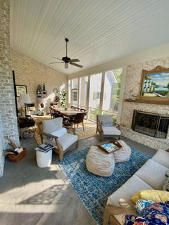 We forgo the FP in the front because we like to sit out on the porch and people watch. We are close to the street. For privacy, we snuggled around the fireplace on the screened porch. Works out great because in the evening, the sun has gone around the back of the house and the front is almost always cool (with the fans) in the late afternoon. When entertaining, we start out on the front porch with cocktails. When the sun is setting in the back, we move around the back and have dinner on the screened porch. Then we sit around the fireplace for after dinner drinks and conversation.