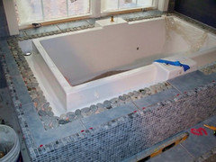 Feeling Good Underfoot: Shower Tiles, Mosaics, Teak Slats and Pebbles