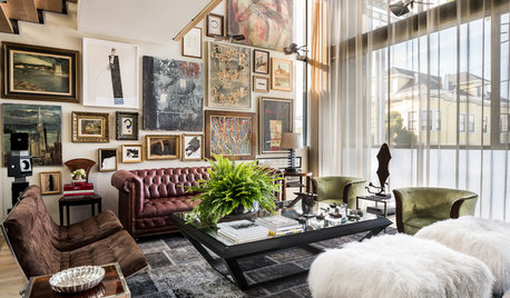 Forays into antiques markets and online auctions bring old-time flavor to a sleek and soaring living-dining space