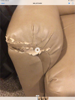 I purchased a Lane love seat and after a few months the one cushion started to wear. The product was not real leather and would not wear as well as leather and I understood that when I purchased it. I contacted the company and they wanted a copy of my original receipt. I had moved just a few weeks before I contacted them and I explained that since the move I could no longer find the receipt. I received no reply to that email. Within the next 2 months the top layer of what ever they have on it to make it look like leather on the cushion has peeled off down to the cloth material . I again contacted the company with more photos of the entire seat showing that there is no wear other than this cushion and it is obviously a defect in the material. There response was "their quality specialists examined the photos and determined there are no issues or defects in the material". Obviously they feel their product is not worth standing behind! Her are the photo I sent.
