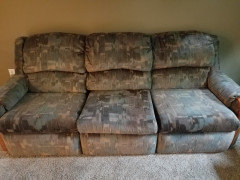 Plus the lever that you have to use to recline, wore out about 10 years ago. i only kept it because it is also a rocker. But i am going to dump this junk soon. It can't be used as a recliner since you get stuck in reclining position.