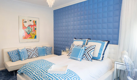 With a textured blue wall, a mod white bed and even a Lichtenstein, this teen's bedroom draws envy beyond her age group