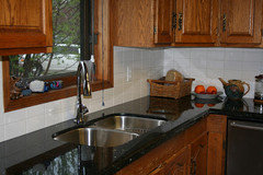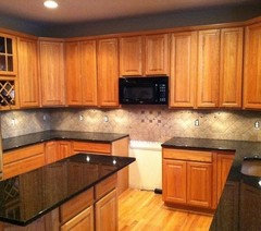 Blue Pearl Granite & Black and Gray Glass tile back splash too mu