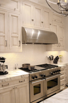Marble has broken free of the standard kitchen countertop slab and is showing up on bathtub backsplashes, modern dining tables and more