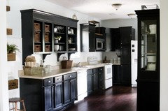 But black cabinets stand out in a world of their own. When done in an antiqued finish, they're rustic and yet elegant beyond any other cabinet color or style...yummy. And when done on a new cabinet with a tight wood grain, they're sleek and lucious. They're a wonderful design choice that too few pick because they fall too quickly in the "don't want a dark kitchen etc" camp that too many land in and end up with boring kitchens instead. But much like a colored cabinet, red, blue, yellow, if you do go black you need to do it right. The contrast of a black and white for cab and countertop is a great contrast. I'm always taken aback by corian because I owned it, know it was stupid expensive, and resented the cracks, scratches, stains, etc that were on my new corian counters....horrific stuff that costs too much. I don't get people who spend the same amount or close on corian that they would for something like stone or metal or wood (and before you think I'm all stone all the time, I have metal counters and adore them...I'd kill for copper...fabulous stuff, and love my stainless counters). I also have a wonderful formica, but my installer did wonderful edges so that wasn't a worry. I can understand the issue of edge worries if they don't do a good job. And if the only choice was formica with bad edges and seams verses corian...well of course I'd go corian.