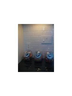 One of my favorite things in the kitchen (which is hard to see from my photos) are the apothecary jars and Anchor Hocking candy jars filled with - candy! My kids' friends call it the candy kitchen and they love to sugar up before going home (sorry, parents!)
