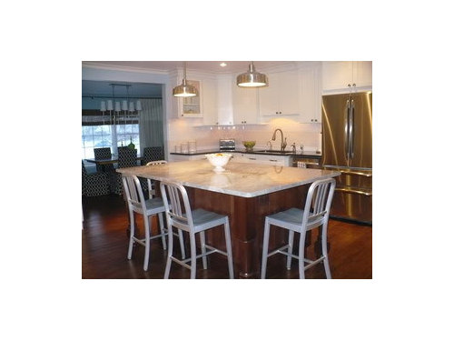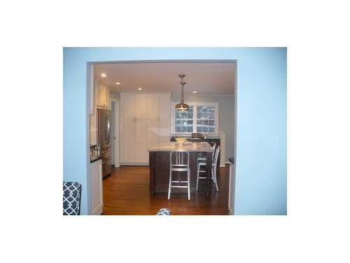 I like the overall layout of the kitchen, but I was limited because: we didn't bump out - just repurposed the space, and I wanted the view from the kitchen into the dining room with the bay window (which faces South) and I wanted a giant island that doubled as a kitchen table. It's a rather long walk from the sink to the cooktop and ovens, but I felt it was a necessary trade-off. In retrospect, I might have put a small prep/wash sink to the far left of the cooktop, so it would have doubled as a work space for cooking and a bar area for entertaining. I keep thinking about doing it eventually, but I'm not sure it's a real possibility.