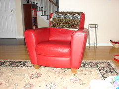 In my home, I really crush over my vintage crystal chandies, a free chair I recovered in leopard, campaign table, my antique piano, and a couple of goofy carved Asian figurines.