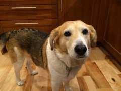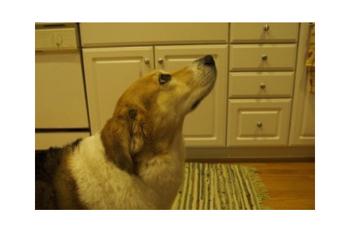 Before: Our dog pleading with us to replace the kitchen :-)