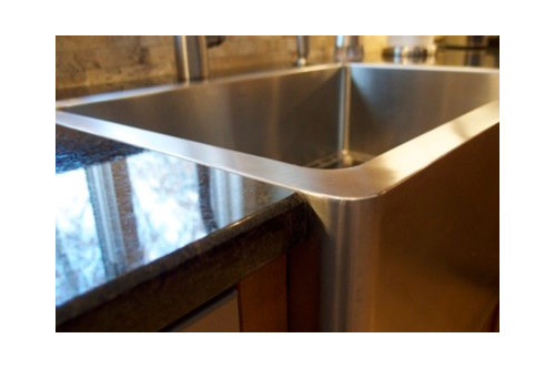 After: Farmhouse sink flush mounted to granite
