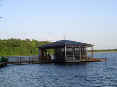 Lush forest views provide an idyllic backdrop for a Midwestern family's board games, coffee breaks and warm-weather dinners